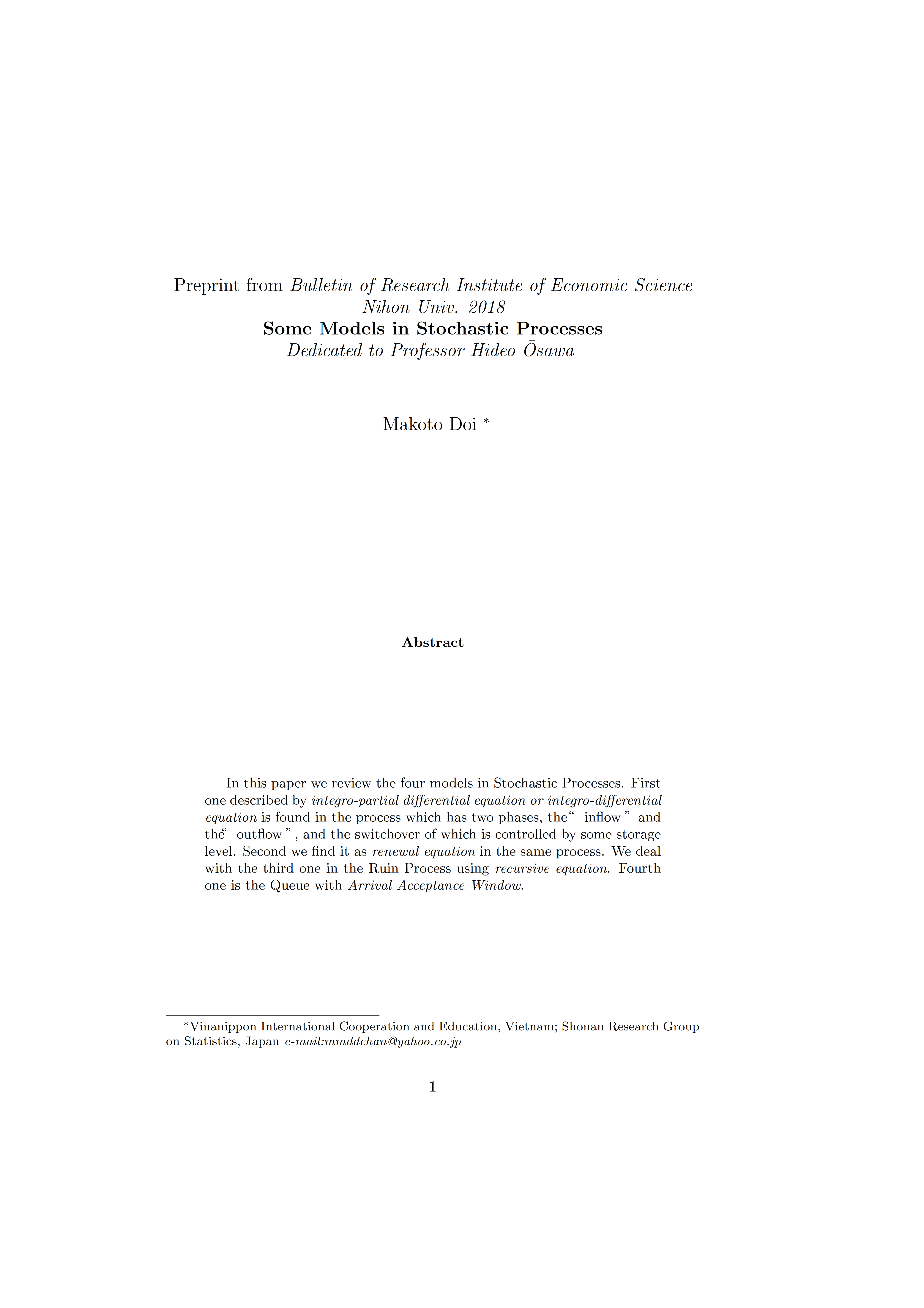 Giáo sư Doi Makoto đã công bố nhiều công trình nghiên cứu của mình về lĩnh vực Toán học, thống kê và gần đây nhất bài báo cáo “Some Models in Stochastic Processes” (tạm dịch “Một số mô hình trong quá trình ngẫu nhiên”) vừa công bố trên tạp chí nghiên cứu của trường Đại học Nihon, Nhật Bản.
