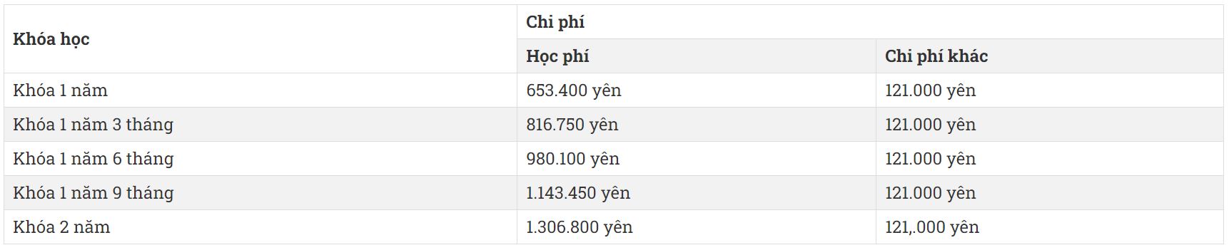 Lưu ý: Bảng học phí sẽ thay đổi theo từng thời điểm. Các chi phí khác bao gồm: