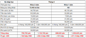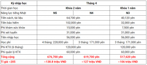 3.5 Chi phí khóa học Tháng 4 thời điểm bắt đầu nhập học