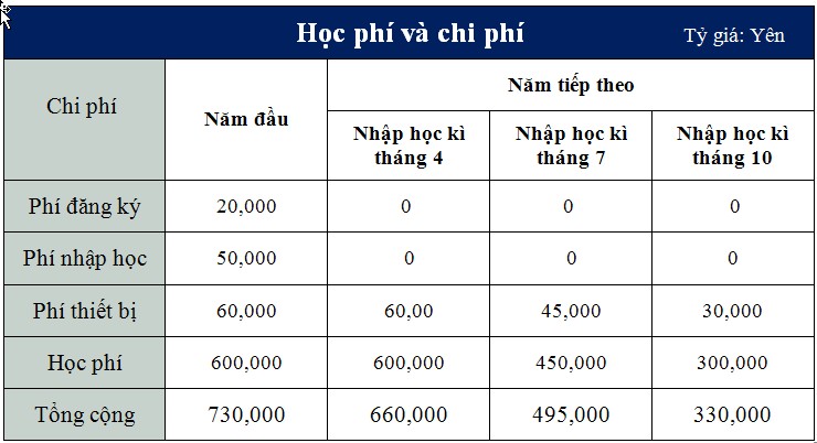 Chi phí ở ký túc xá là 120,000 Yên đến 280,000 Yên (3 tháng đầu tiên).