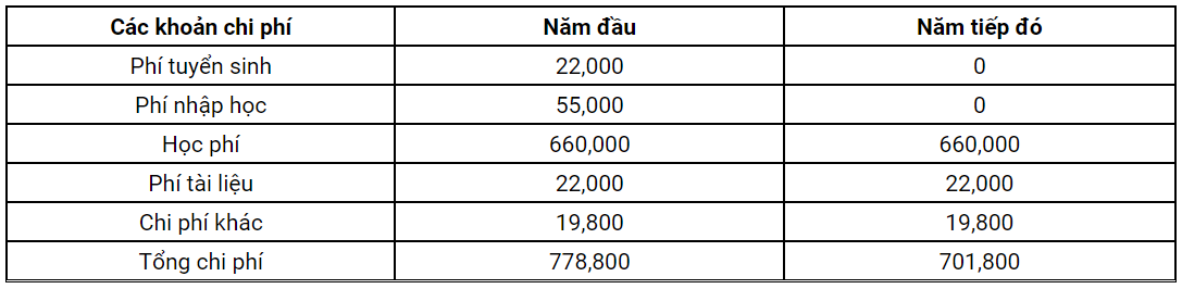Dưới đây là thông tin về chi phí và ký túc xá tại Nhật ngữ Mirai