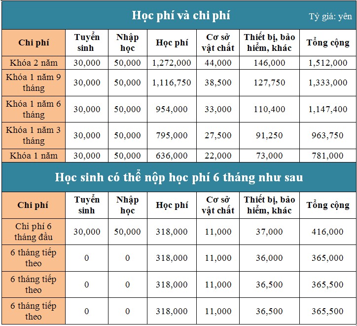 - Học bổng dành cho sinh viên xuất sắc sẽ nhận được 100.000 Yên/ 3 tháng.