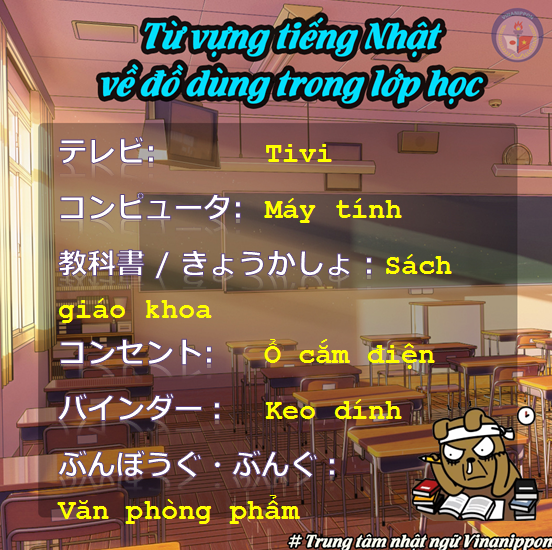 Với bộ Từ vựng tiếng Nhật về đồ vật trong lớp học trên đây, sẽ giúp các bạn bổ sung thêm vốn từ vựng tiếng Nhật nhé!