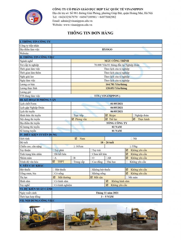 🌻TUYỂN DỤNG XKLĐ NHẬT BẢN “MÁY CÔNG TRÌNH – HYOGO”